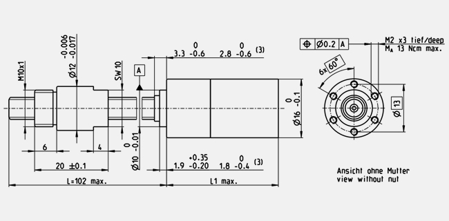 | 徑向容差 | 距離法蘭最大 0.08 mm, 6 mm |